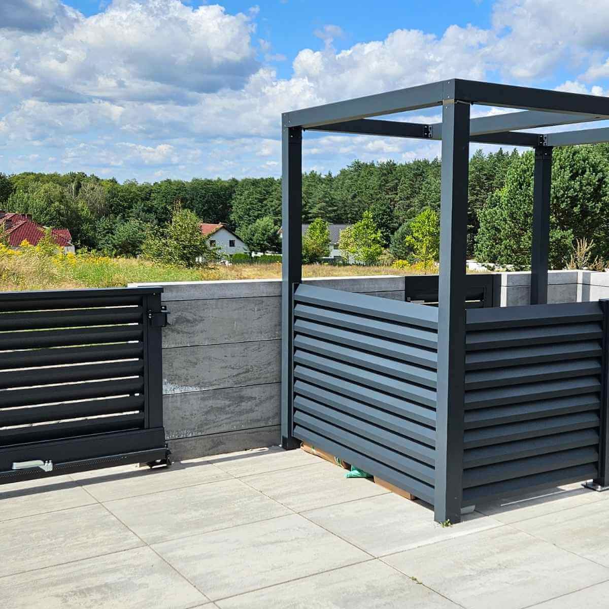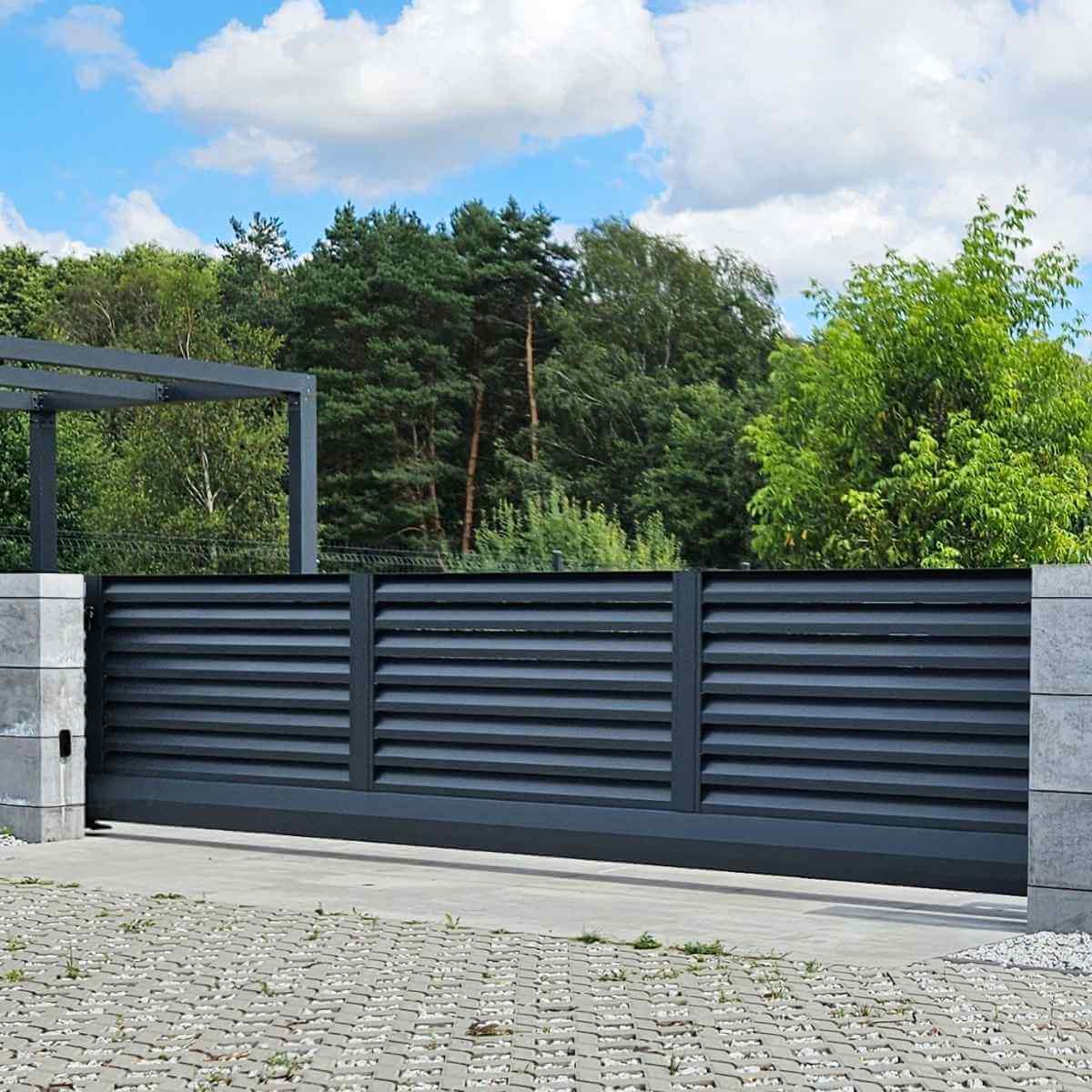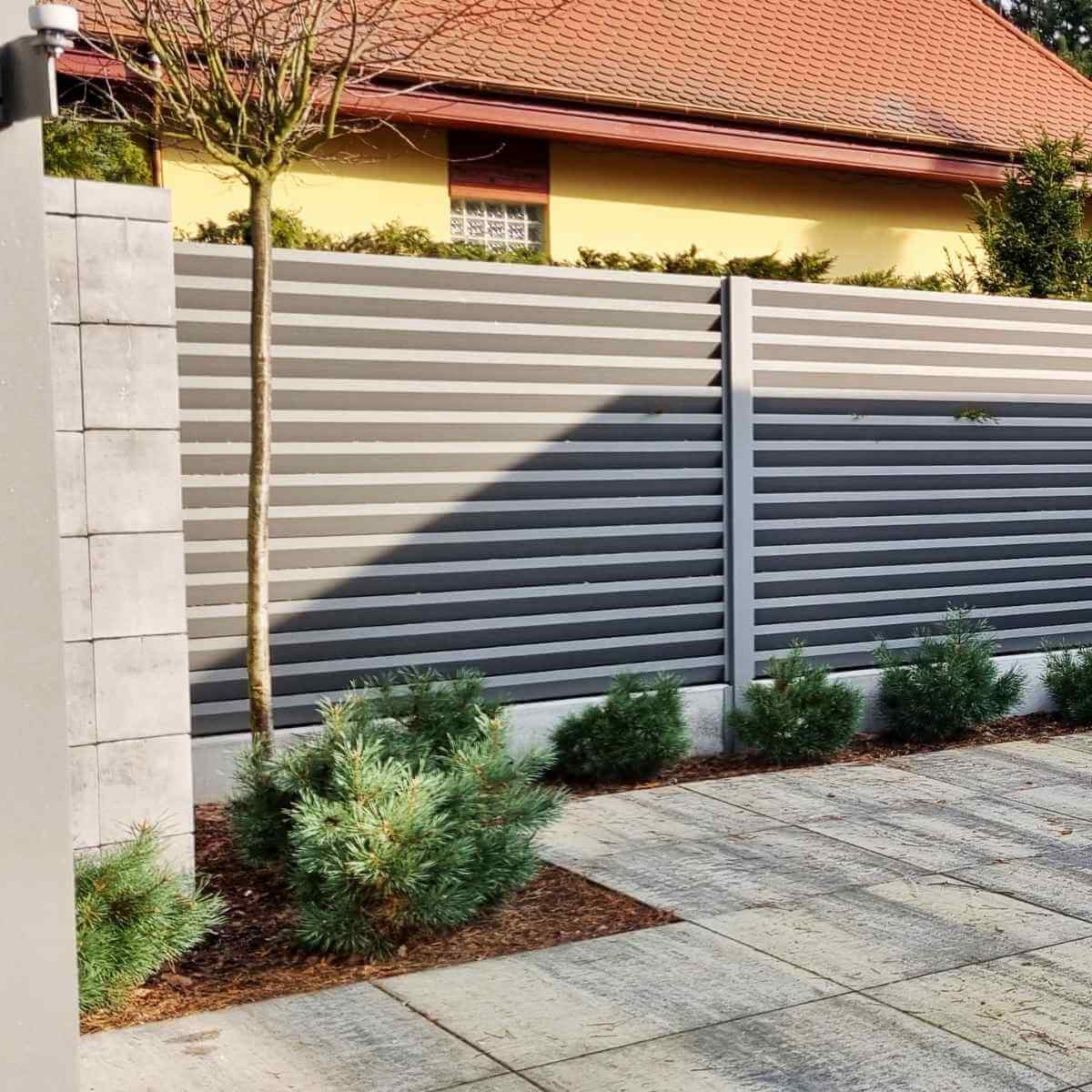Der Aluminiumzaun FORTUNA vereint elegantes Design mit funktionalem Sichtschutz auf höchstem Niveau. Charakteristisch für dieses Modell ist die außergewöhnliche Anordnung der Aluminiumprofile, die durch ihre schräggestellte Positionierung in 45°-Winkeln eine plastische, dynamische Wirkung entfalten. So entsteht eine einzigartige Turbinenoptik, die dem Zaun eine ganz besondere architektonische Ausstrahlung verleiht.