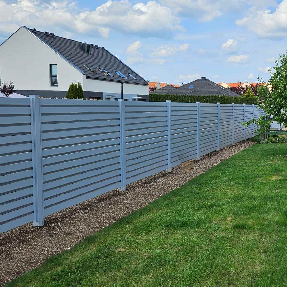 FORTUNA LIGHT steht für dezente Eleganz und moderne Linienführung. Die waagerecht verlaufenden Aluminiumprofile mit den Maßen 115 x 20 mm sind flach übereinander angeordnet und bilden eine harmonische, ruhige Zaunfläche mit verlässlichem Sichtschutz. Dieses Modell überzeugt durch seine schlichte Formgebung, die sich nahtlos in moderne Architektur einfügt.